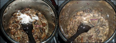 Masukkan tepung & tumis hingga tepung masak (warna agak perang. Jika terlalu kering, letakkan sedikit butter